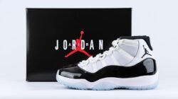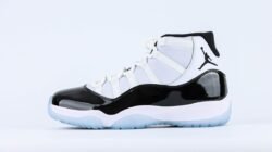 The Air Jordan 11 Replica Retro Concord brings the iconic design to a smaller size without losing any of its original charm. The Air Jordan 11 Retro Concord features a crisp white ballistic mesh upper paired with a sleek black patent leather mudguard. Below, a translucent rubber outsole is highlighted by Concord herringbone-tread inserts, adding both style and grip. This timeless combination of white, black, and translucent elements makes the ‘Concord’ a must-have for any collection.