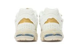 Part of the Protection Pack designed by New Balance designer Yue Wu, the 2002R ‘Protection Pack – Sea Salt’ released alongside two other colorways. Built with leather, the shoe’s upper appears in white, with the quarter panel, forefoot and heel adding eroded suede to the look. The 2002R branding brings color in red and blue, while underfoot, a distressed Abzorb midsole provides cushioning.