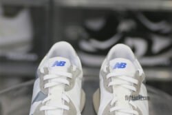 The New Balance 327 Grey features a grey and white suede and nylon upper with plain white acting as a color base for the thick midsole. lining. and trim at the collar of the New Balance 327. From there. a deep. smooth grey covers the base. wrapped in suede overlays. and a bright white New Balance logo complete the design.